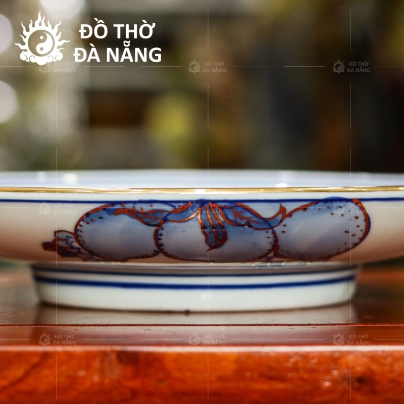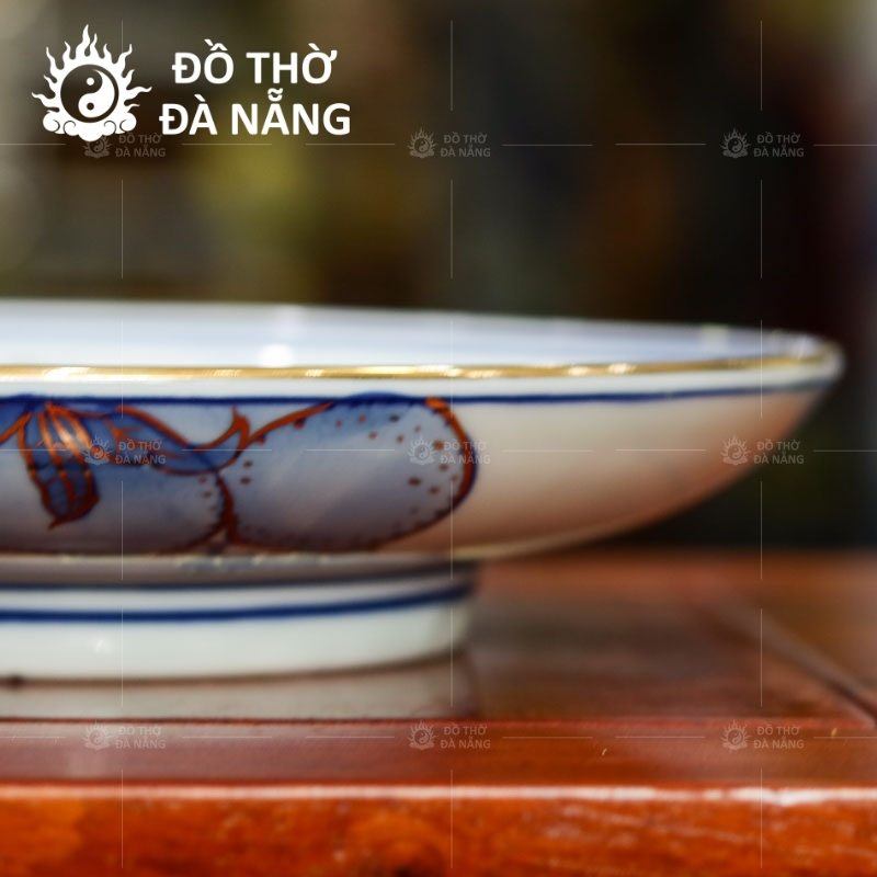 | Tên | Mâm bồng thờ Bát Tràng họa tiết hoa sen men lam vẽ vàng | Đặc tính | An toàn sức khỏe, thân thiện môi trường |